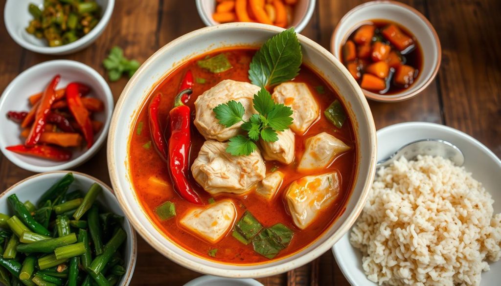 這道料理以其豐富的辣味和層次感著稱。八種不同的辣椒品種為湯頭帶來令人驚艷的口感。新鮮的雞肉、特製的辣椒醬料,以及精心調配的香料,共同譜寫出一曲令人難忘的美味交響曲。